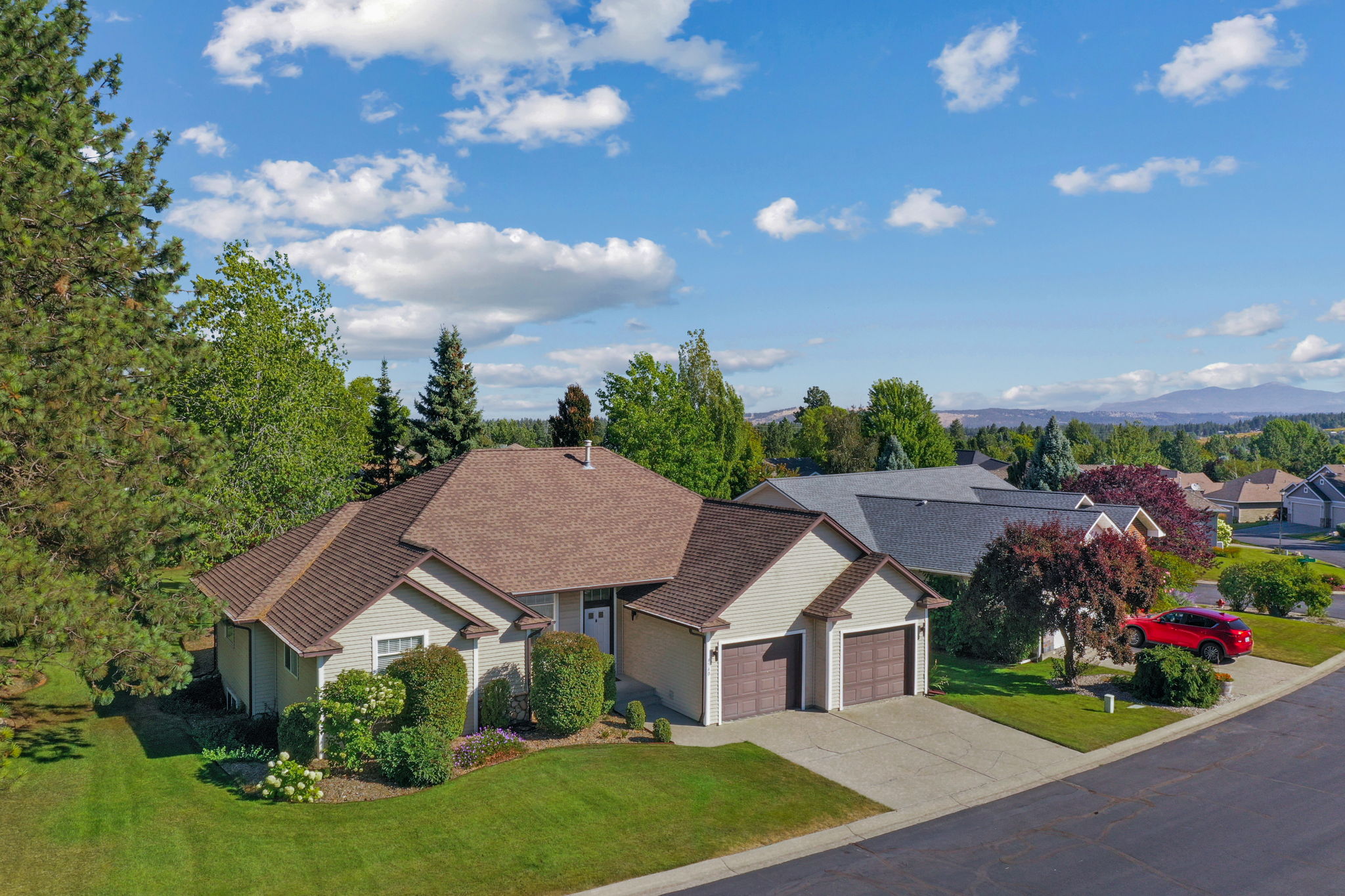 Welcome to Glenngrae, a premier community on Spokane's South Hill. Neighborhood amenities include gated access, a beautifully maintained community pool, lawn maintenance and snow removal, in addition to water, sewer and garbage service at each residence. Truly setting this property apart is its fantastic outdoor environment, boasting natural privacy from mature landscaping and strategically placed planters. A flagstone patio anchors the space for an abundance of outdoor seating options at ground level or up just a couple steps on the deck, which accesses just off the kitchen. Enjoy alfresco dining well into the evening, as outdoor lighting provides for intimate ambiance. The interior does not disappoint with generous room sizes, an abundance of natural light and a well-appointed kitchen with premium Dekton counters and a stainless steel appliance package. The primary ensuite is complemented by a private deck overlooking the backyard. Roof was just replaced with a 30-year architectural shingle.